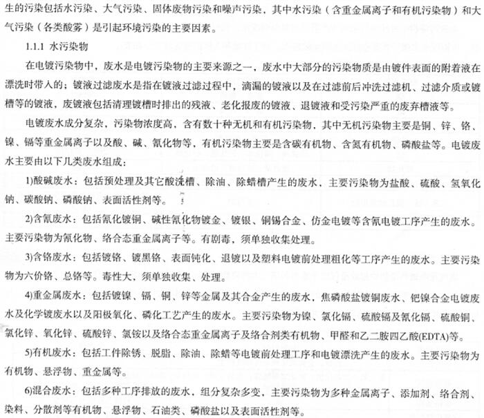 1.1 電鍍污染物的構(gòu)成